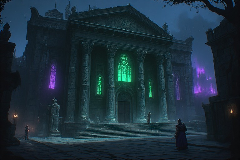 The Temple of All Gods is lit at night from inside, flickering in colors that the old clergy would not recognize. No one goes near the south end after dark voluntarily.